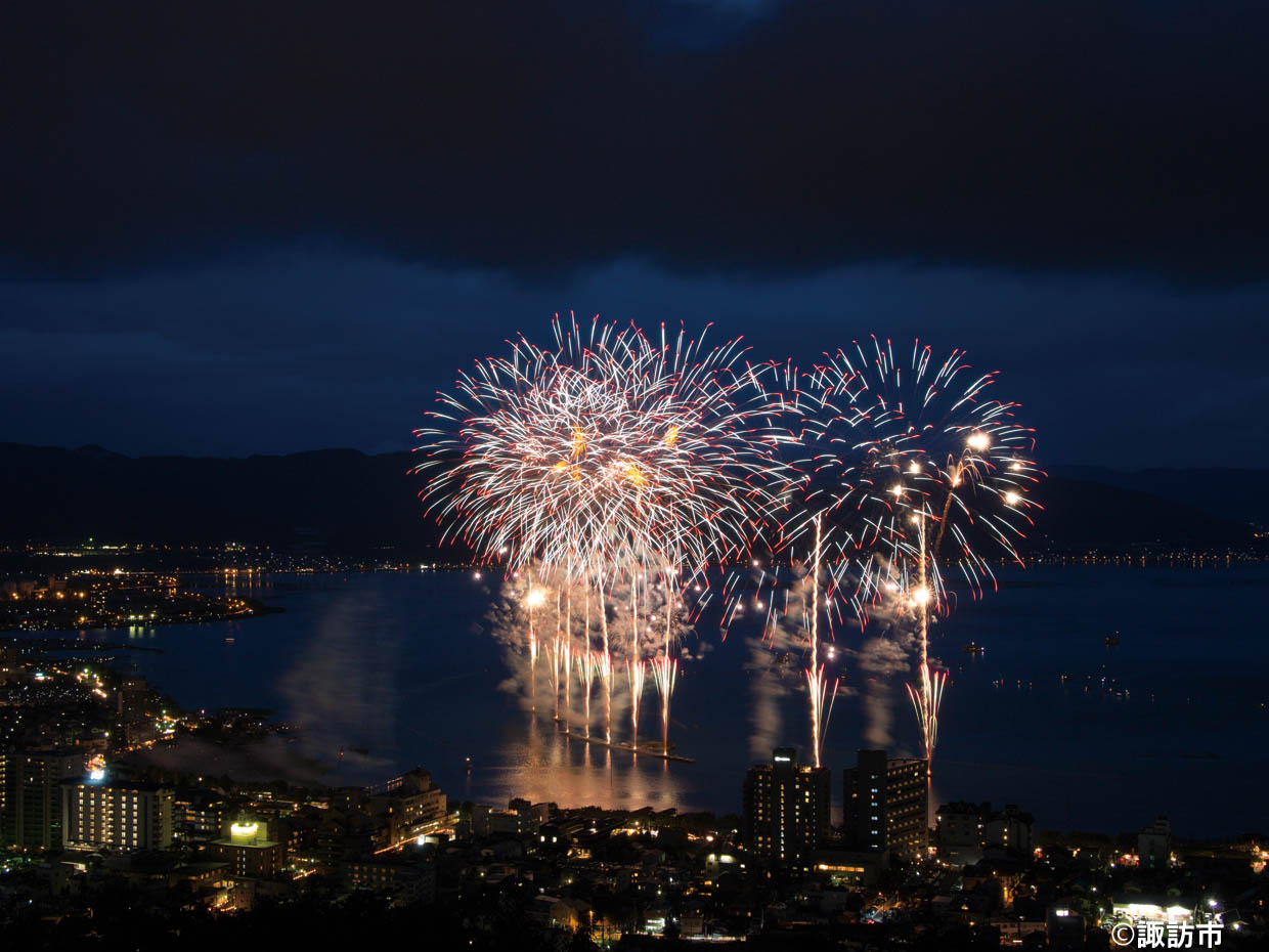 湖上ならではの水上スターマインをはじめ、圧倒的なスケール感を誇る演出が目白押し。今回は水上スターマインが目の前で見られる諏訪湖園桟橋席をご用意しました。