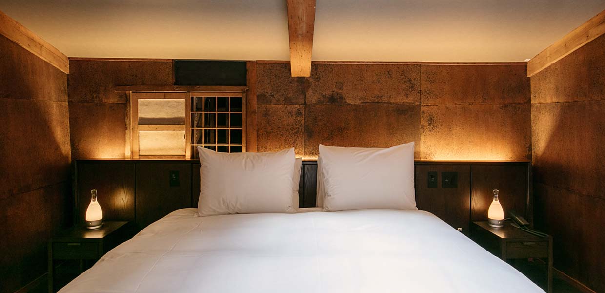 土蔵として漆器が多く格納されていたという歴史を継承し、「黒色の漆」で内装の仕上げをした非日常感を味わえるお部屋。