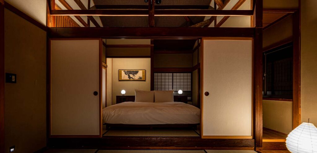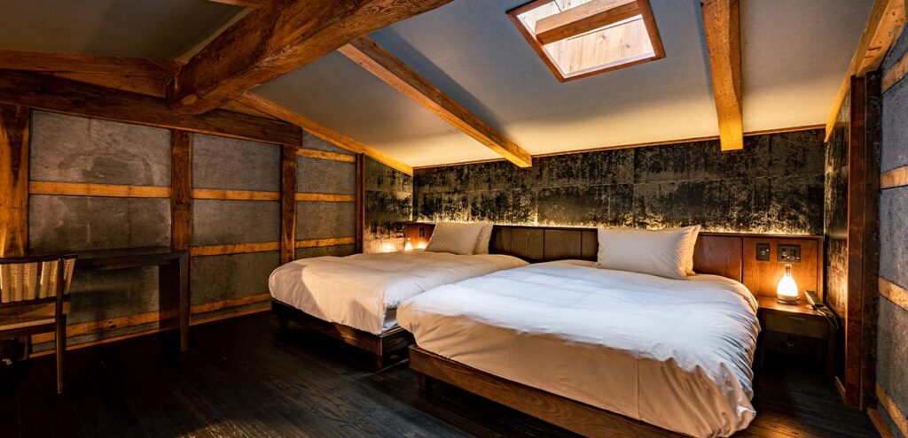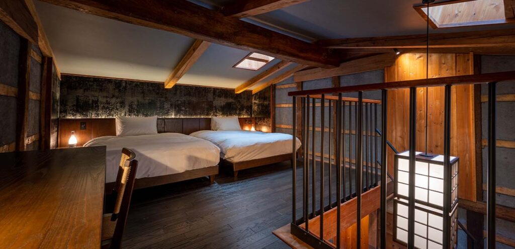 百七と同様、家財蔵に宿泊するという非日常感とおこもり感を味わえる、吹き抜けを設けたメゾネットタイプのお部屋。