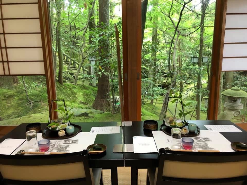 - 見学後は、美しい庭園を見ながら季節の和懐石の昼食