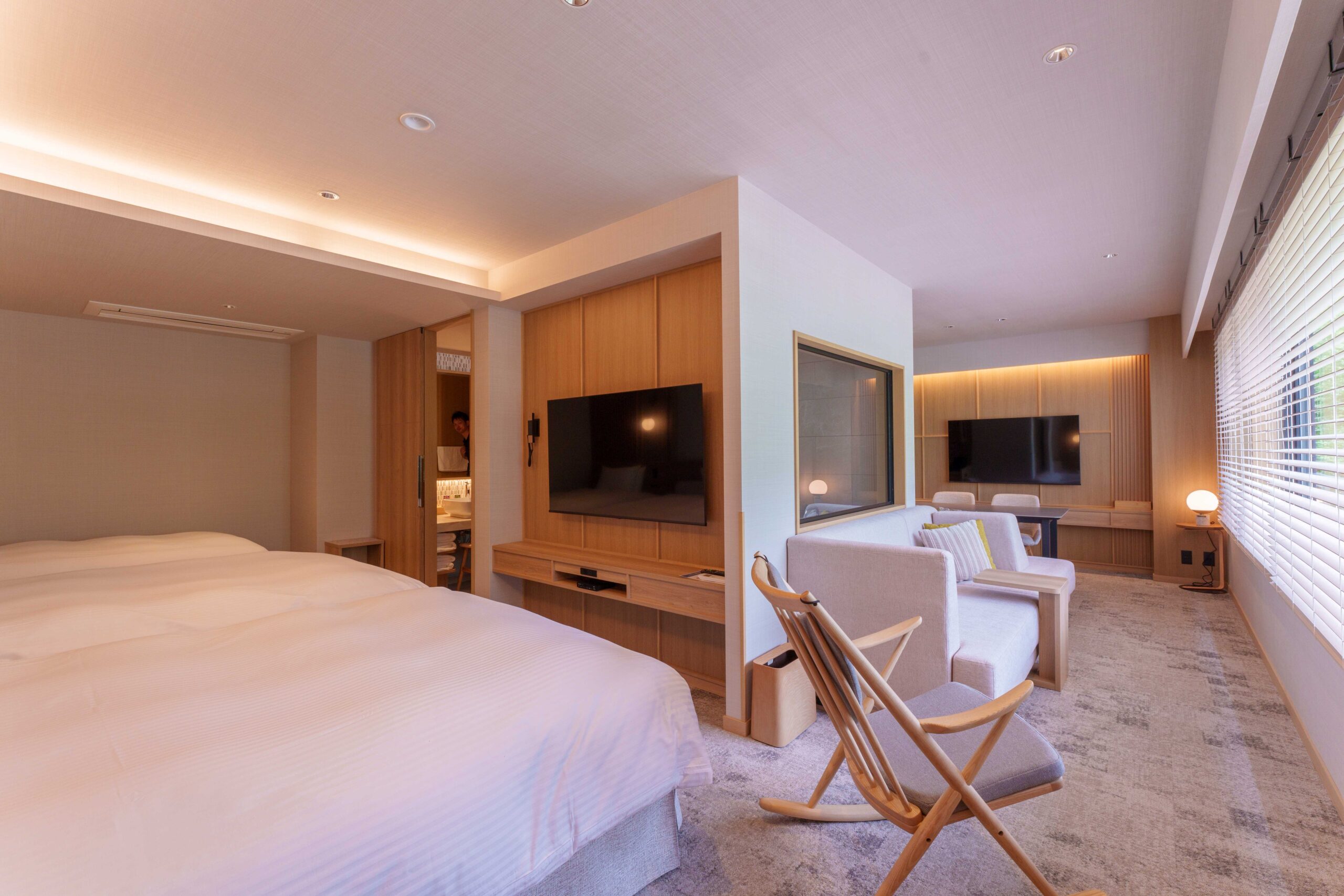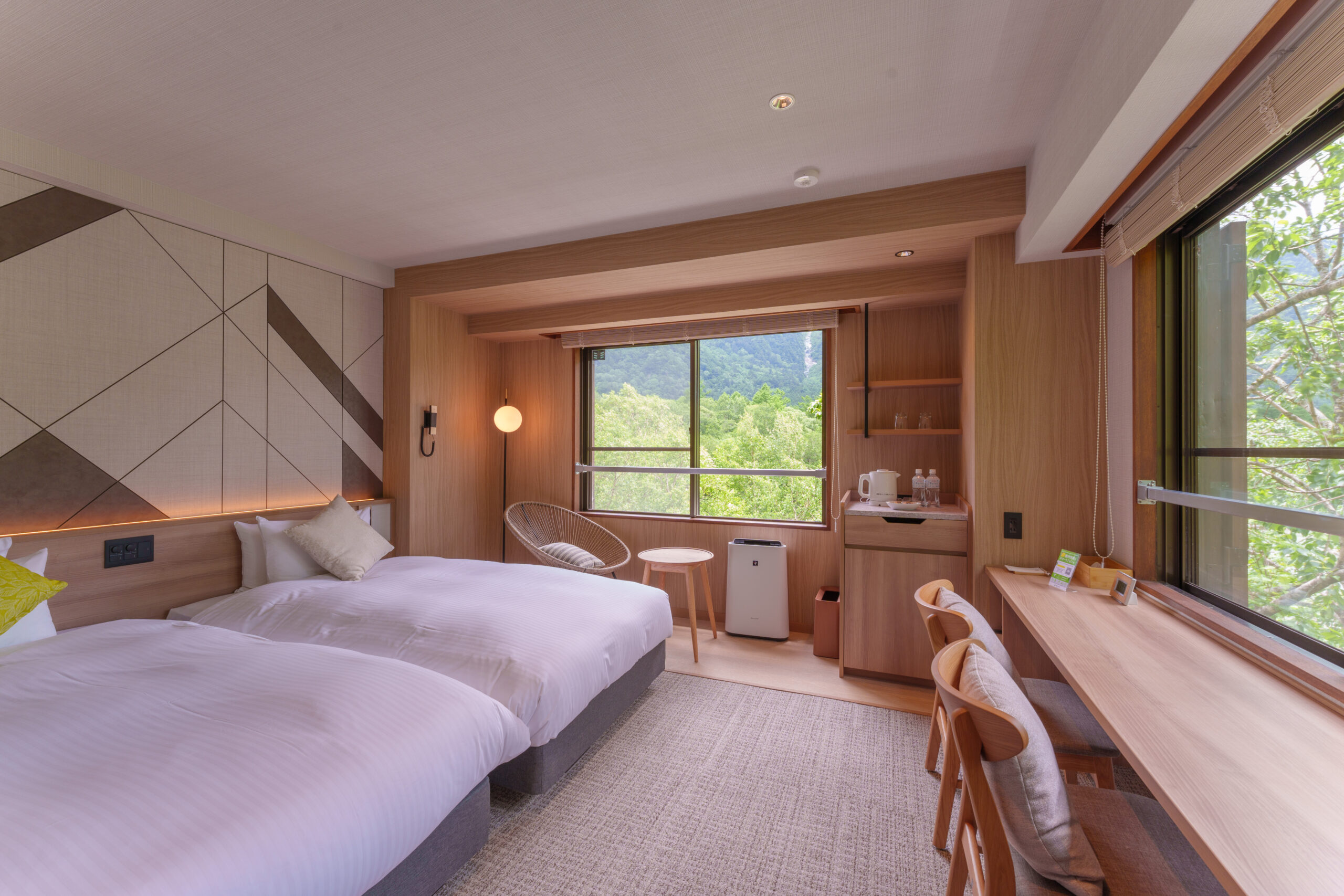 従来のツインルームを倍の広さに拡張、窓枠も大きく確保した快適性を高めた客室です。