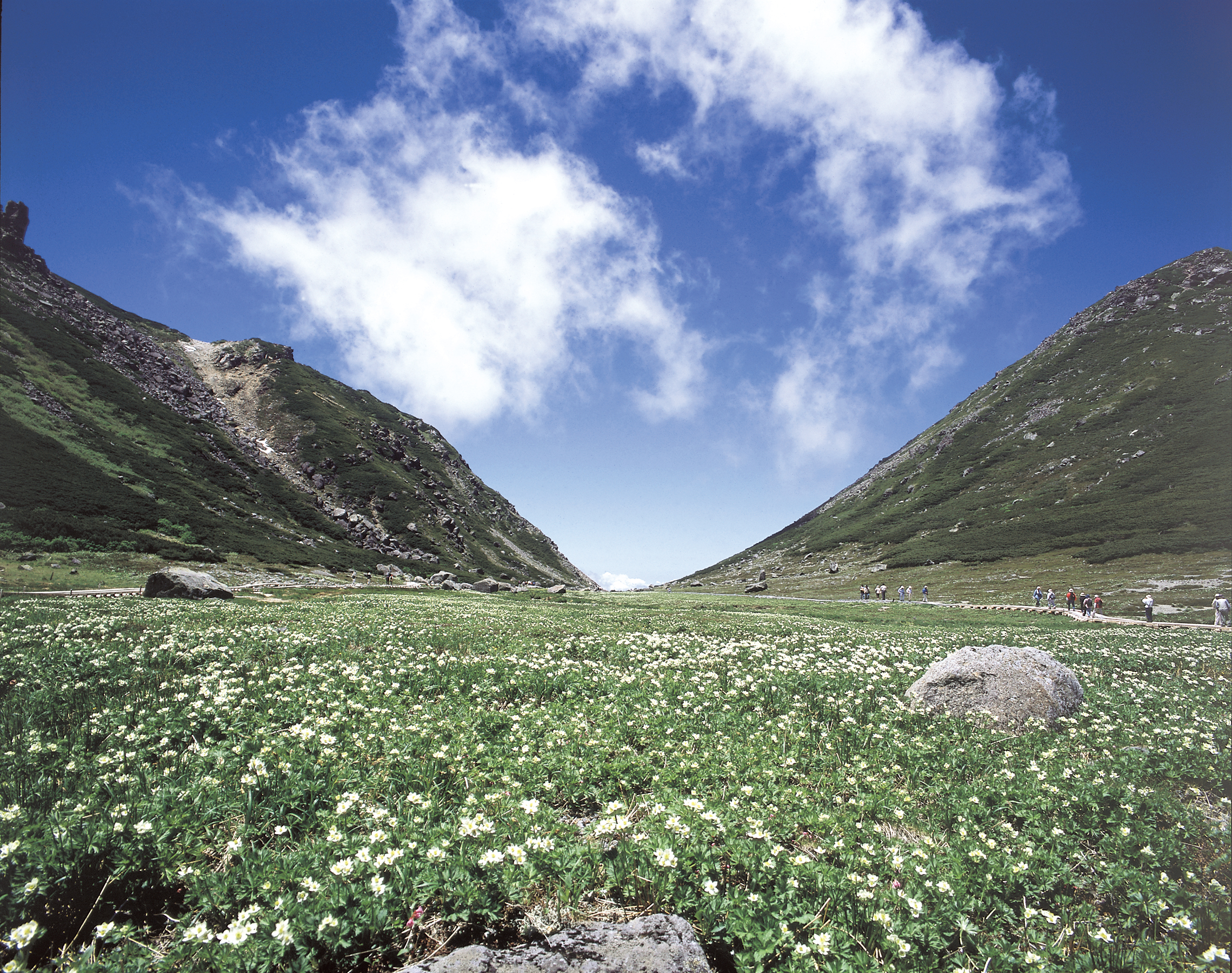 3,000m級の北アルプスのダイナミックな雰囲気を手軽に味わえる「雲上の楽園」。夏は色とりどりの高山植物、秋は一面の紅葉が広がる名所です。